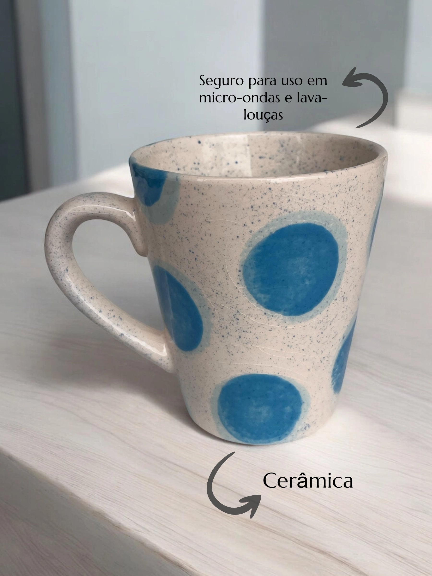 Caneca DualDots em Cerâmica Artesanal 400 ML Azul