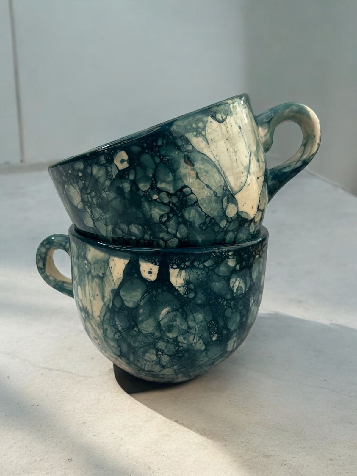 Caneca Jumbo Bubble em Cerâmica Artesanal Verde Petróleo