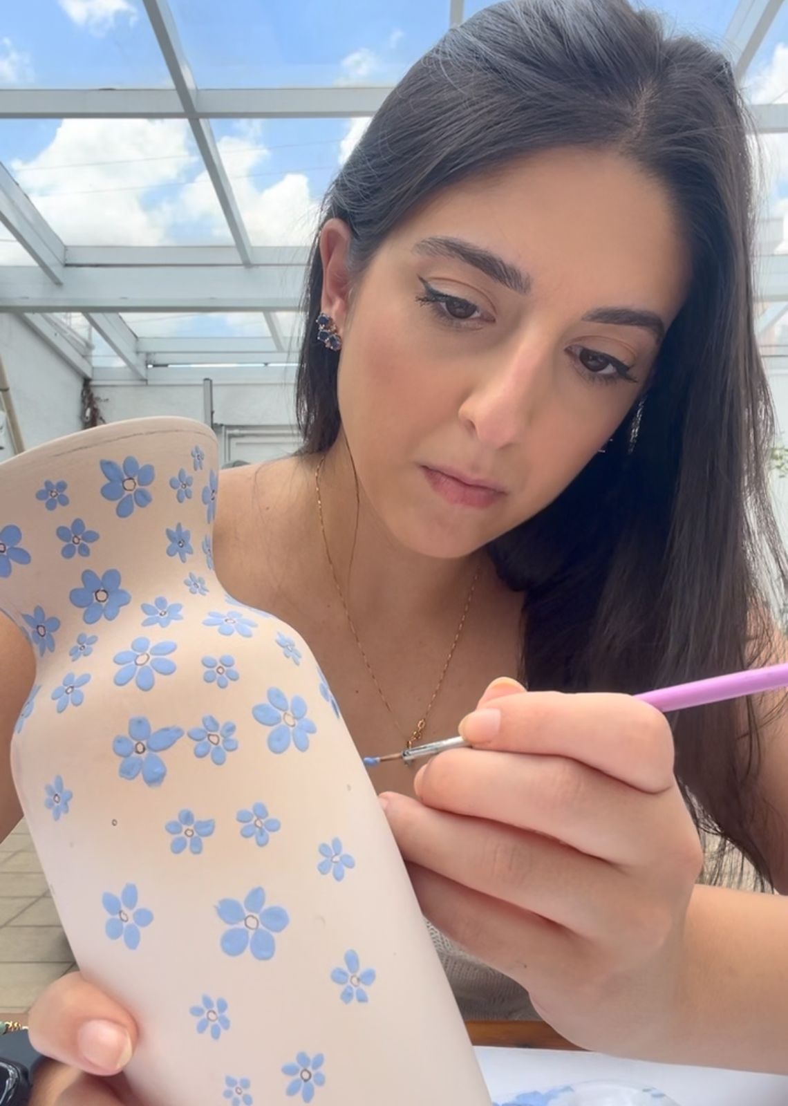 Por dois anos, minha paixão pelas mandalas cresceu, e eu me vi criando obras que me enchiam de orgulho. Mas minha curiosidade foi além. Quando uma amiga começou a fazer aulas de cerâmica, não resisti: precisei experimentar. Foi amor à primeira pincelada! Comecei pintando mandalas em cerâmica e, antes que percebesse, estava criando peças para transformar ambientes inteiros. Cada tigela, prato e xícara que eu faço tem um toque pessoal, e me dedico para que cada uma traga um pouco de alegria, luxo ou simplicidade para quem a recebe.